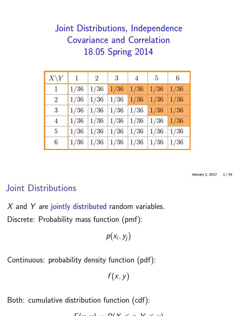 5 0 0 0 0 1/36 1/36 1/36 1/36 1/36 1/36 0 1/6