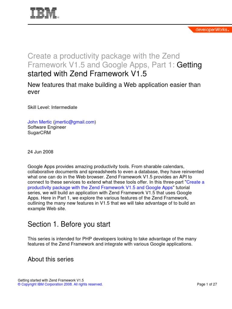 with the Zend Framework V1.5 and Google Apps" series, we'll illustrate how we can