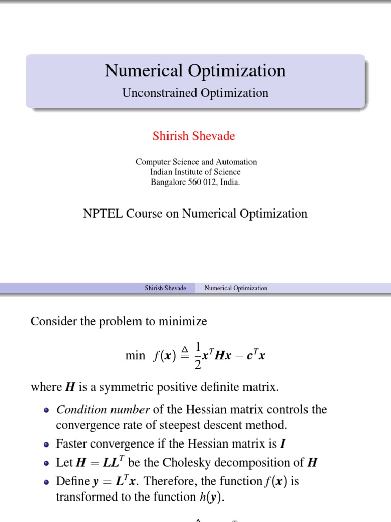 Consider the problem to minimize, f (x) = 12 xT Hx − cT x