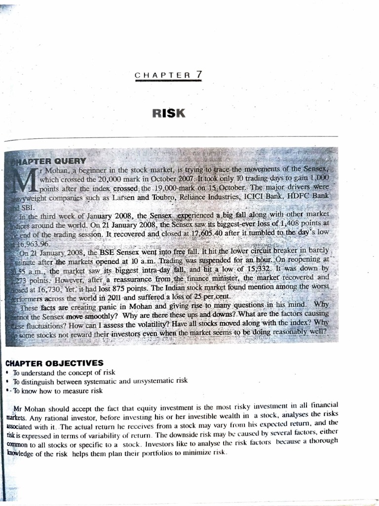 ess than the expected retum. Thus, risk means volatility in returm. Risk is the chance of the