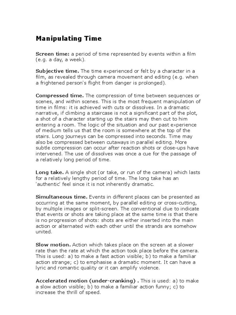 time in films: it is achieved with cuts or dissolves. In a dramatic
