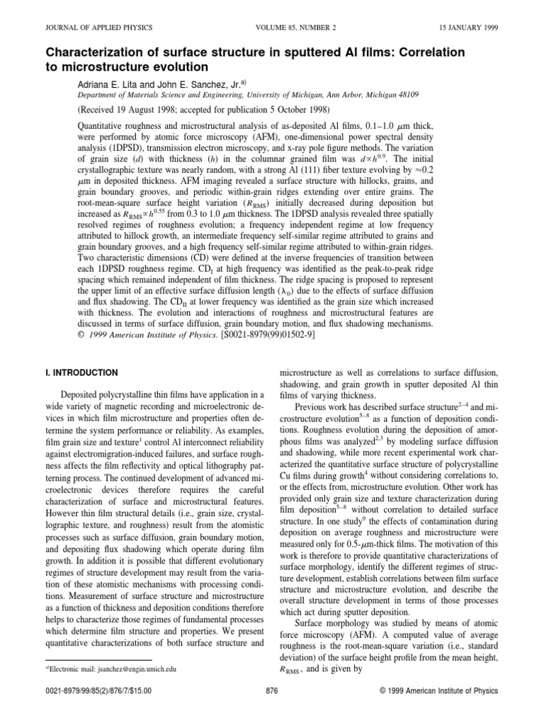 J. Appl. Phys., Vol. 85, No. 2, 15 January 1999 A. Lita and J. E. Sanchez, Jr. 877