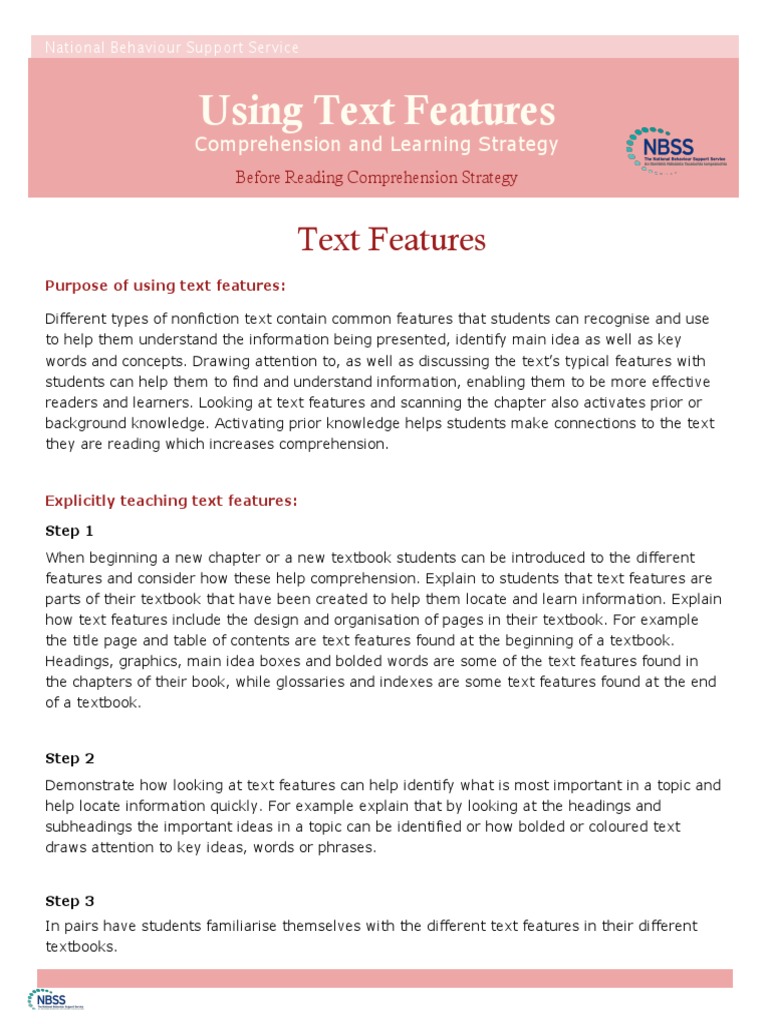 Comprehension Strategy – Text Features National Behaviour Support Service