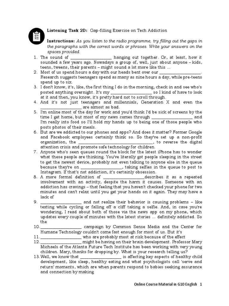 Listening Task 2D: Gap-filling Exercise on Tech Addiction