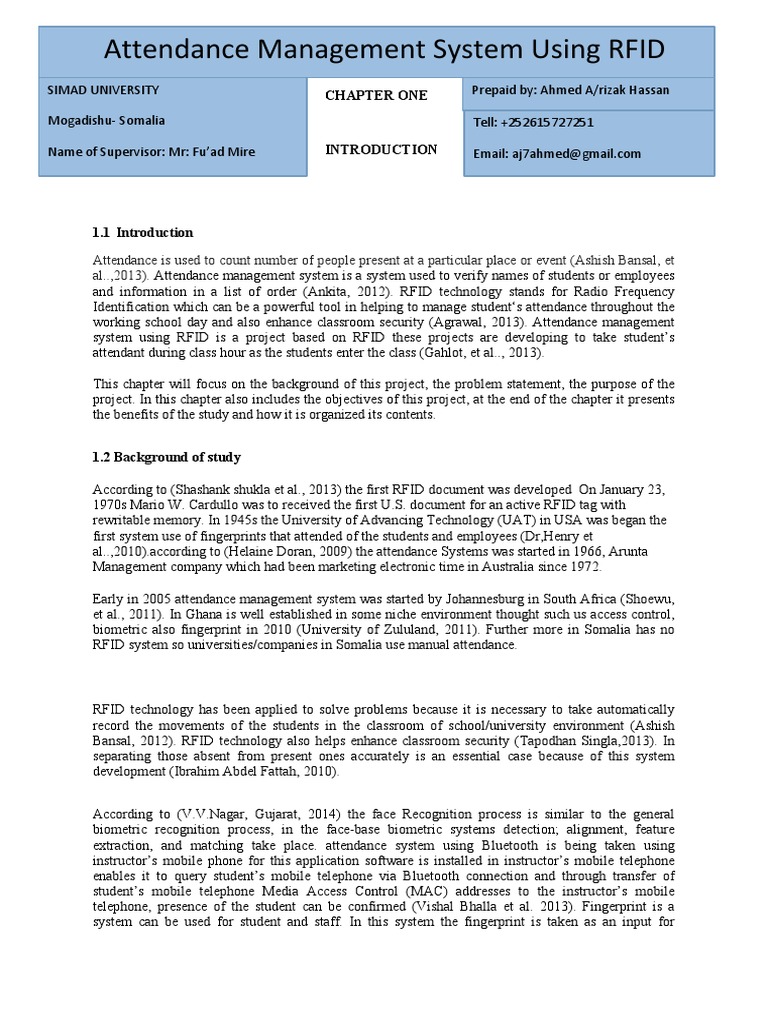 and this study of system attendance RFID become to eliminate old manual method (Hanisah , 2010).