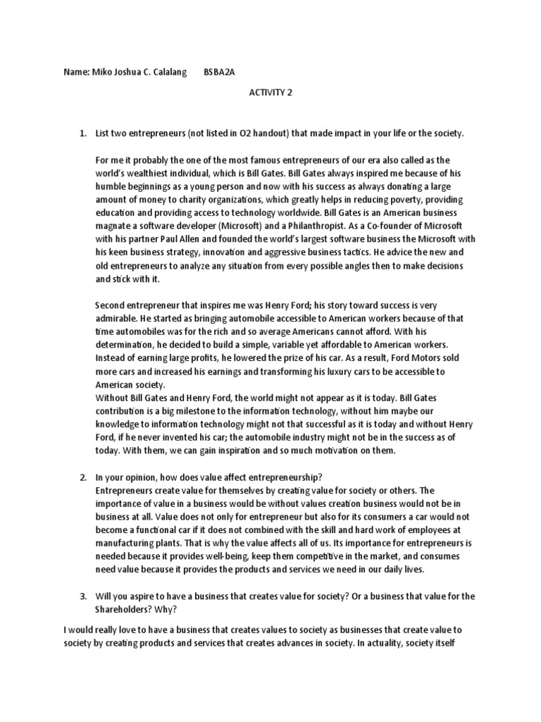 2. In your opinion, how does value affect entrepreneurship?