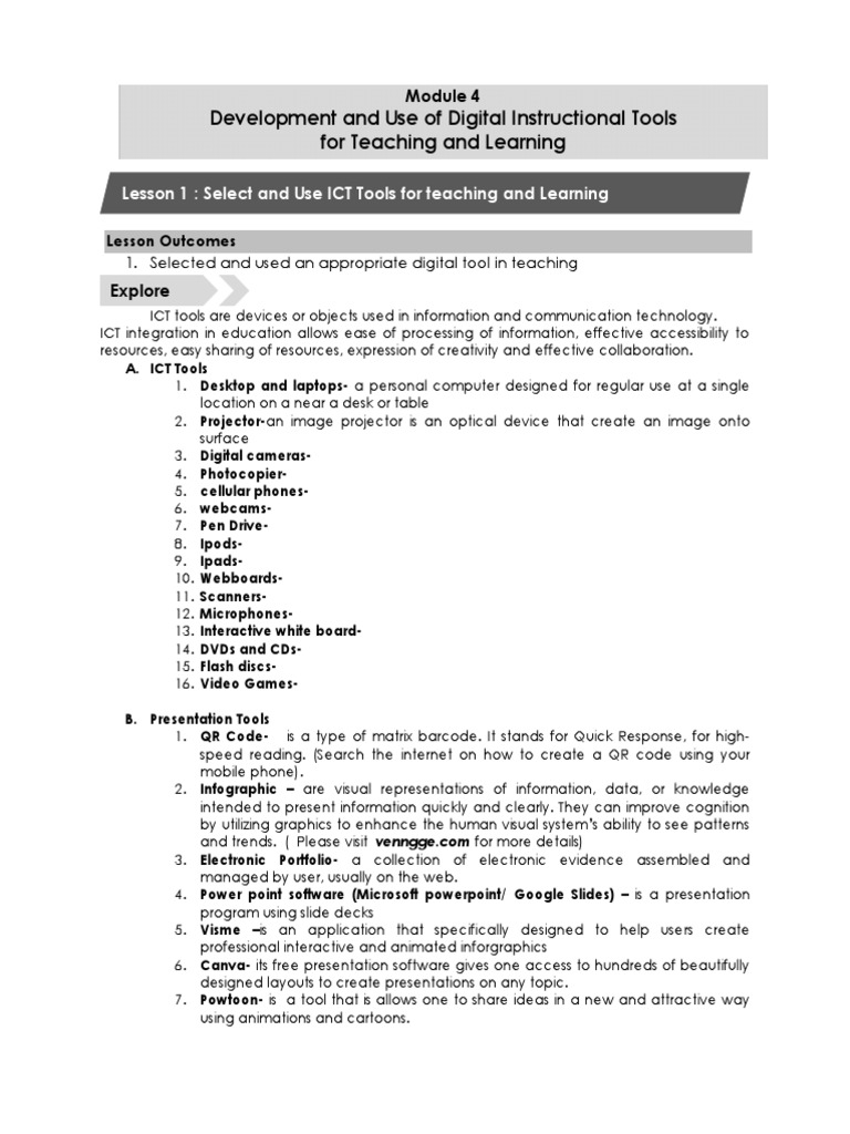 Lesson 1 : Select and Use ICT Tools for teaching and Learning