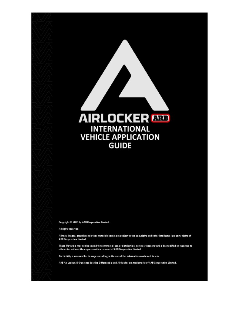 ARB Air Locker Air Operated Locking Differentials and Air Locker are trademarks of ARB Corporation Limited.