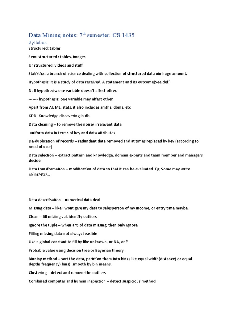 Data Mining notes: 7th semester.