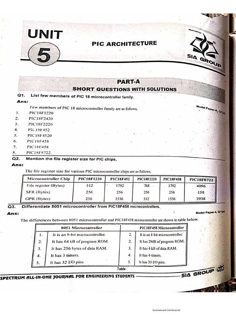 Q7. List the features of PIC18xxx microcontroller family, Model Papen g