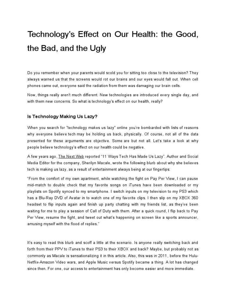 The point is, even if technology has impacted our health in some negative ways, it has also