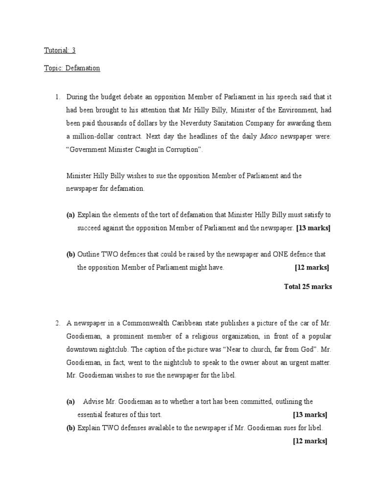 2. A newspaper in a Commonwealth Caribbean state publishes a picture of the car of Mr.