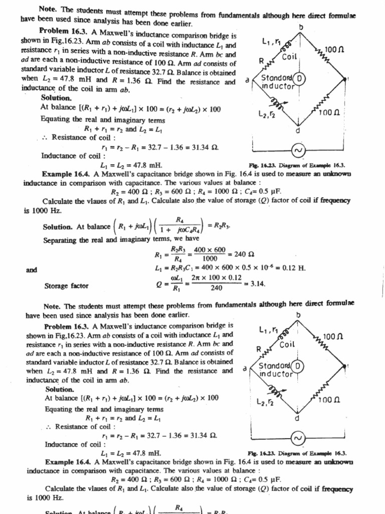 Example 16.4, A Maxwell's capacitance bridge shown in Fig. 16.4 is used to measure an unknown