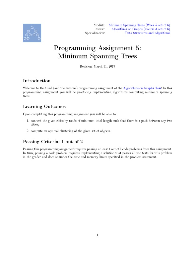 programming assignment you will be practicing implementing algorithms computing minimum spanning
