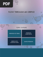 Orifice is an opening (usually circular) with closed perimeter through which fluid flows.