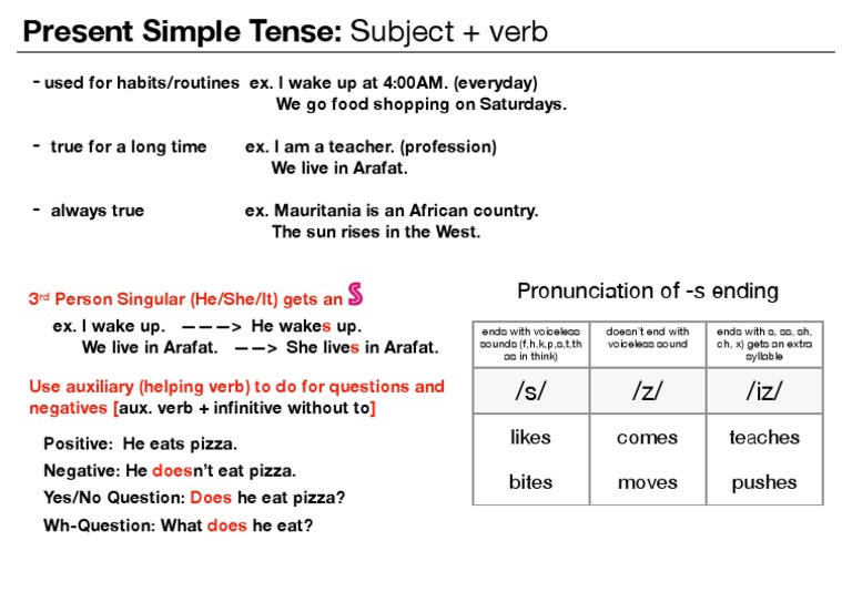 3rd Person Singular (He/She/It) gets an S Pronunciation of -s ending