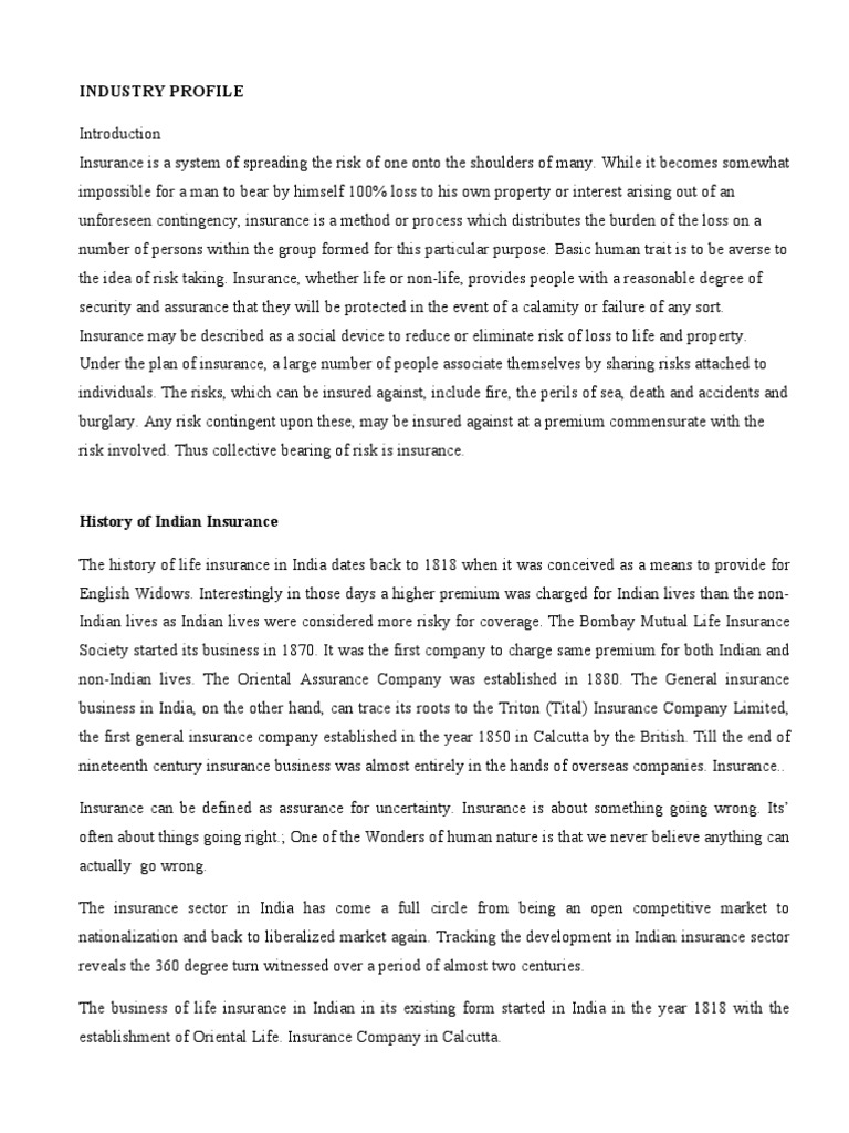 nationalization and back to liberalized market again. Tracking the development in Indian insurance sector