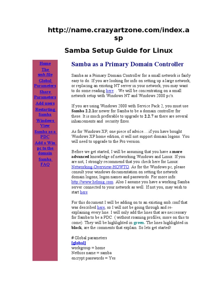 smb.file Samba as a Primary Domain Controller for a small network is fairly