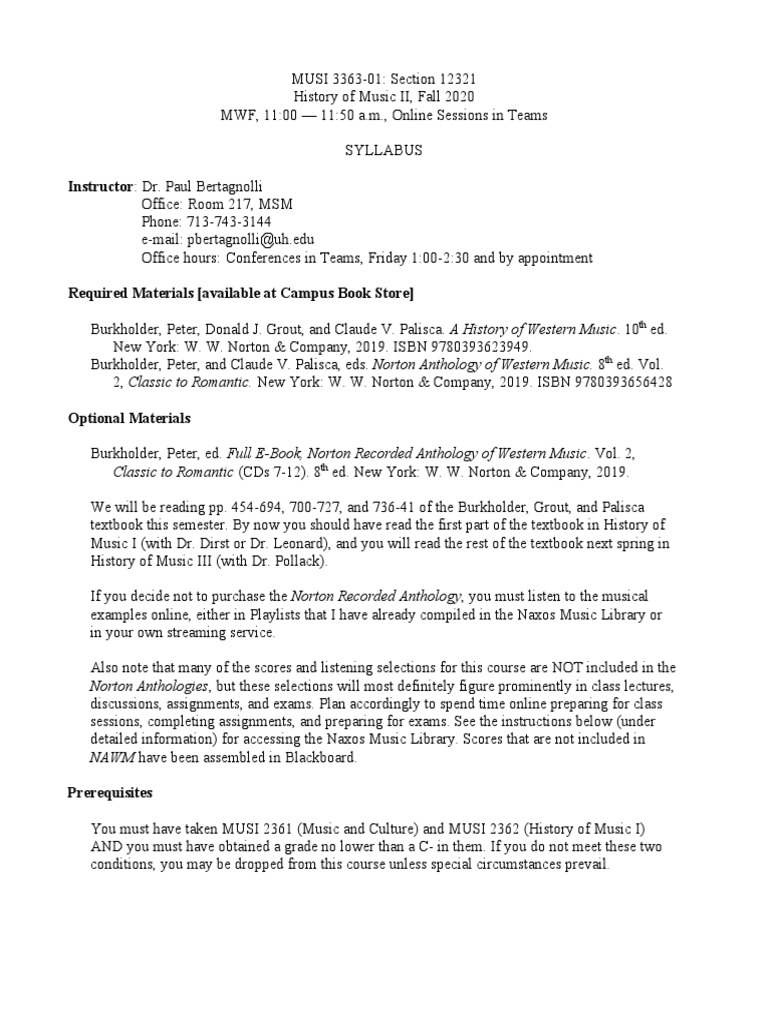 Music I (with Dr. Dirst or Dr. Leonard), and you will read the rest of the textbook next spring in