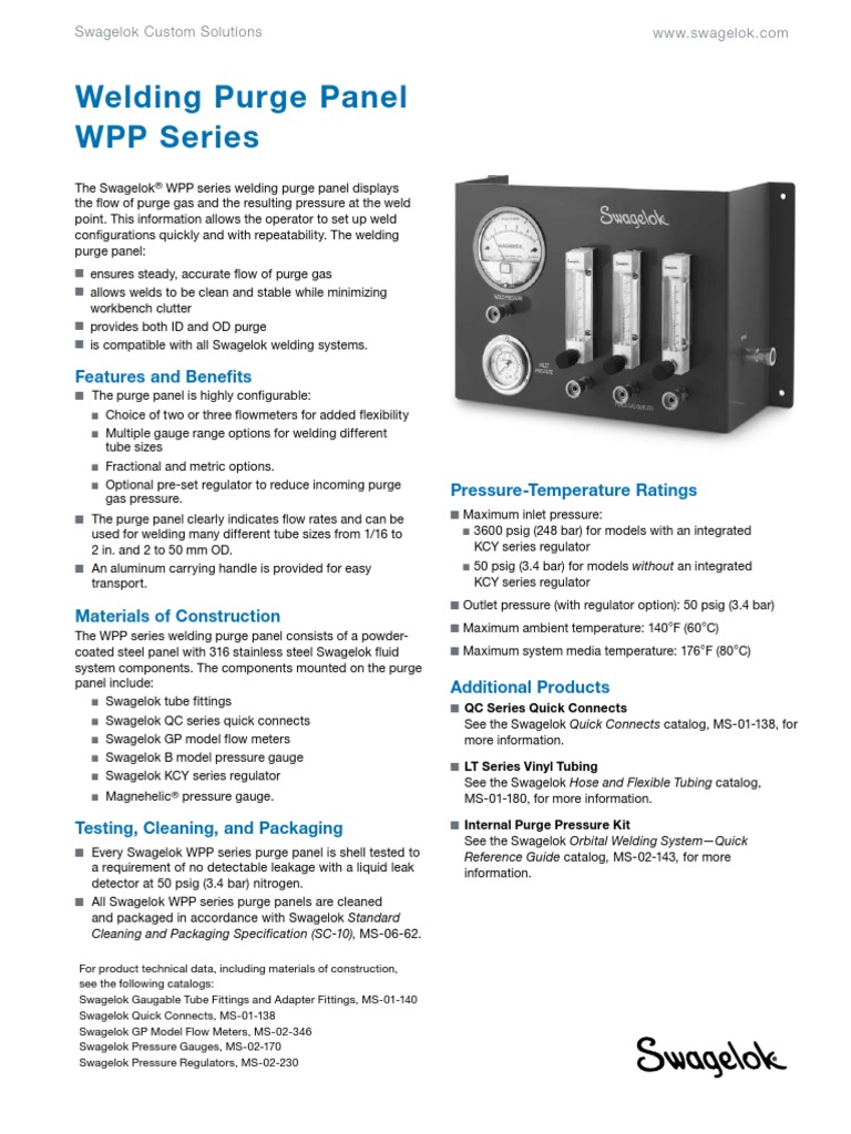 ■ Every Swagelok WPP series purge panel is shell tested to Reference Guide catalog, MS-02-143, for more