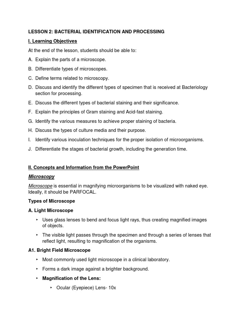 LESSON 2: BACTERIAL IDENTIFICATION AND PROCESSING