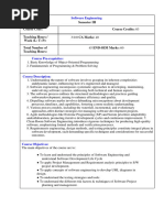 Course Objectives The course is devoted to introduce the Software Engineering methodologies; use the process model such as water fall, evolutionary, and iterative