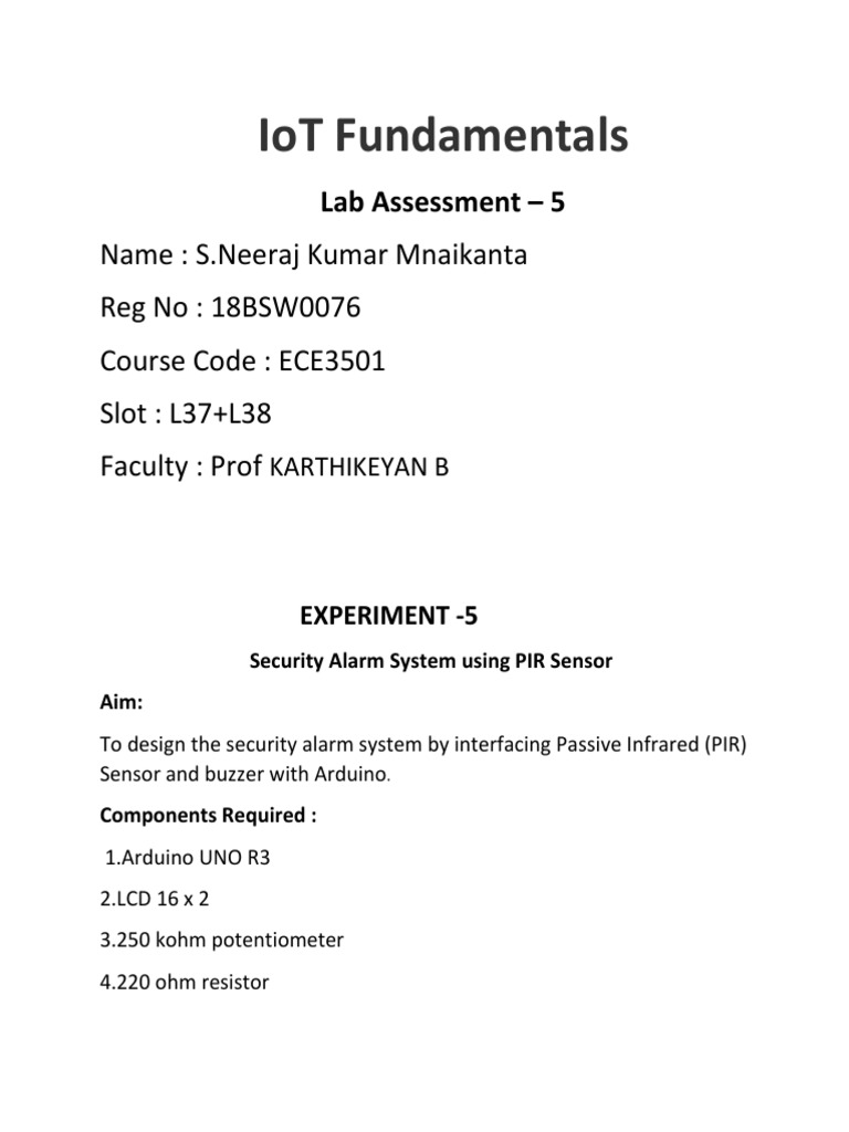 To design the security alarm system by interfacing Passive Infrared (PIR)