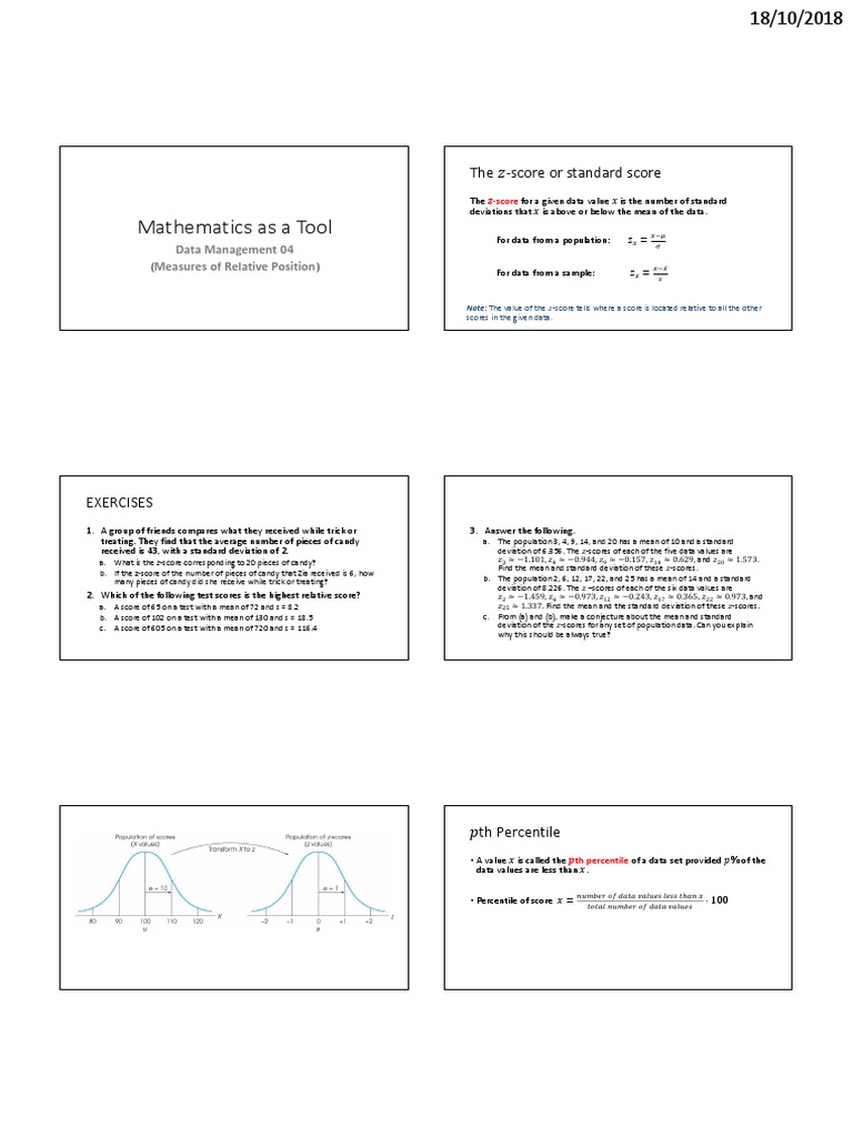 1. During a Grade 10 mathematics achievement test, Brad’s score of 250 was