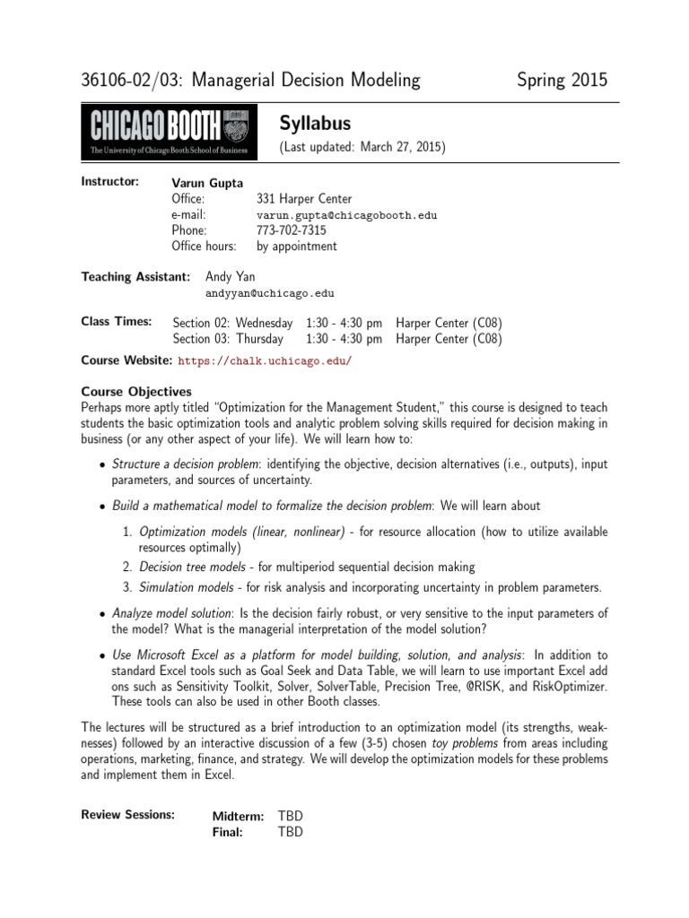 36106-02/03: Managerial Decision Modeling Spring 2015 Syllabus