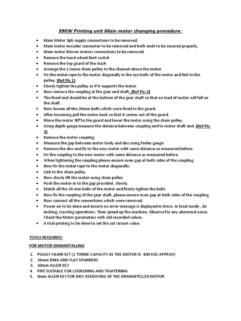 39KW Printing unit Main motor changing procedure: