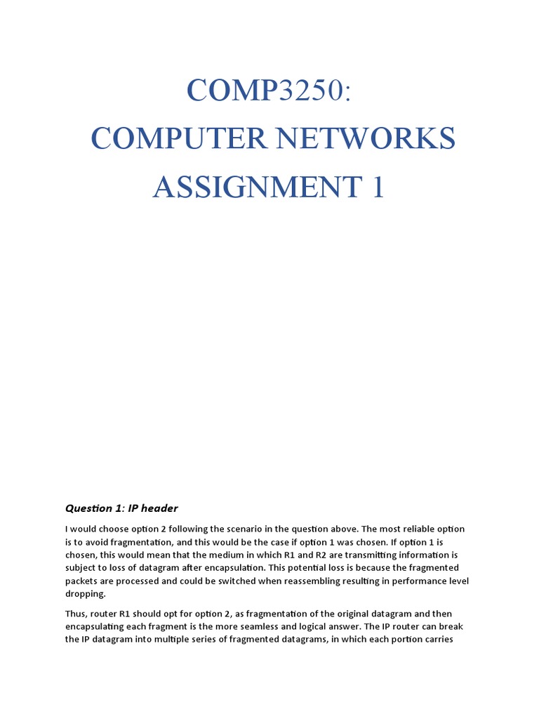 Thus, router R1 should opt for option 2, as fragmentation of the original datagram and then