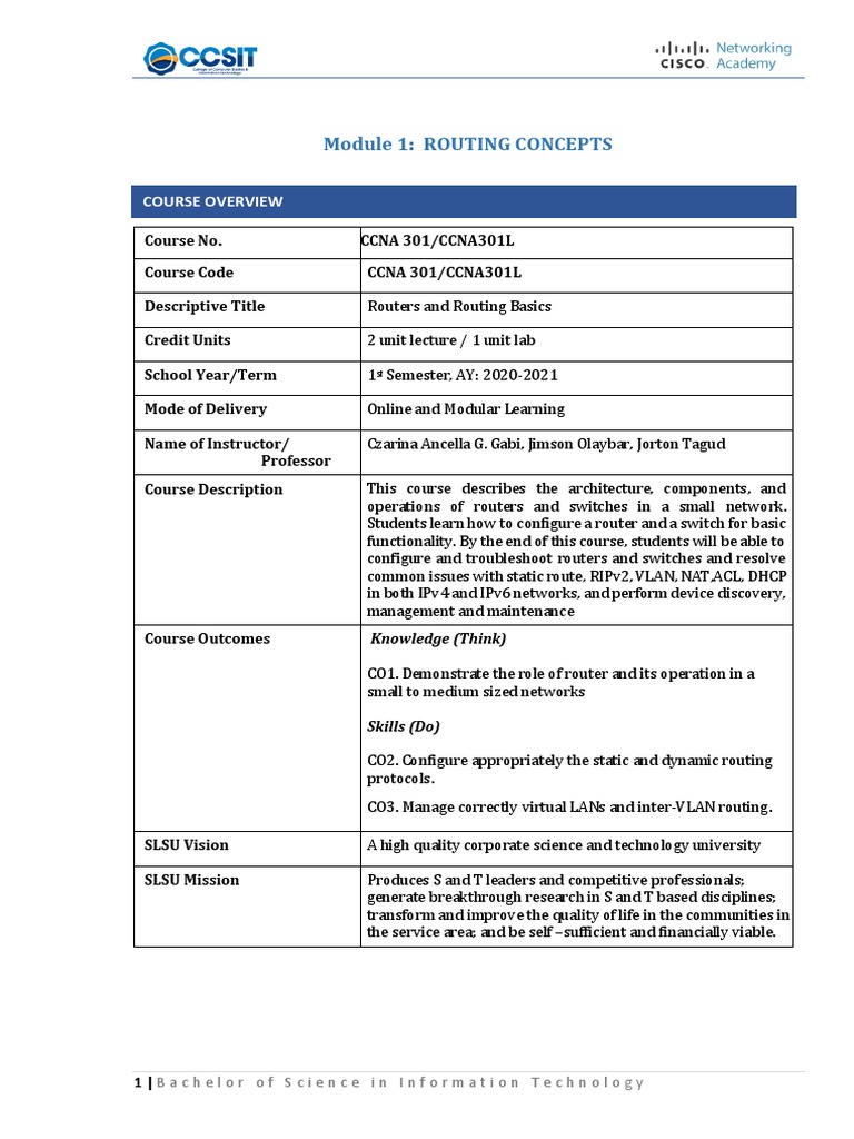 DISCUSSION ON MODULE 1: ROUTING CONCEPTS