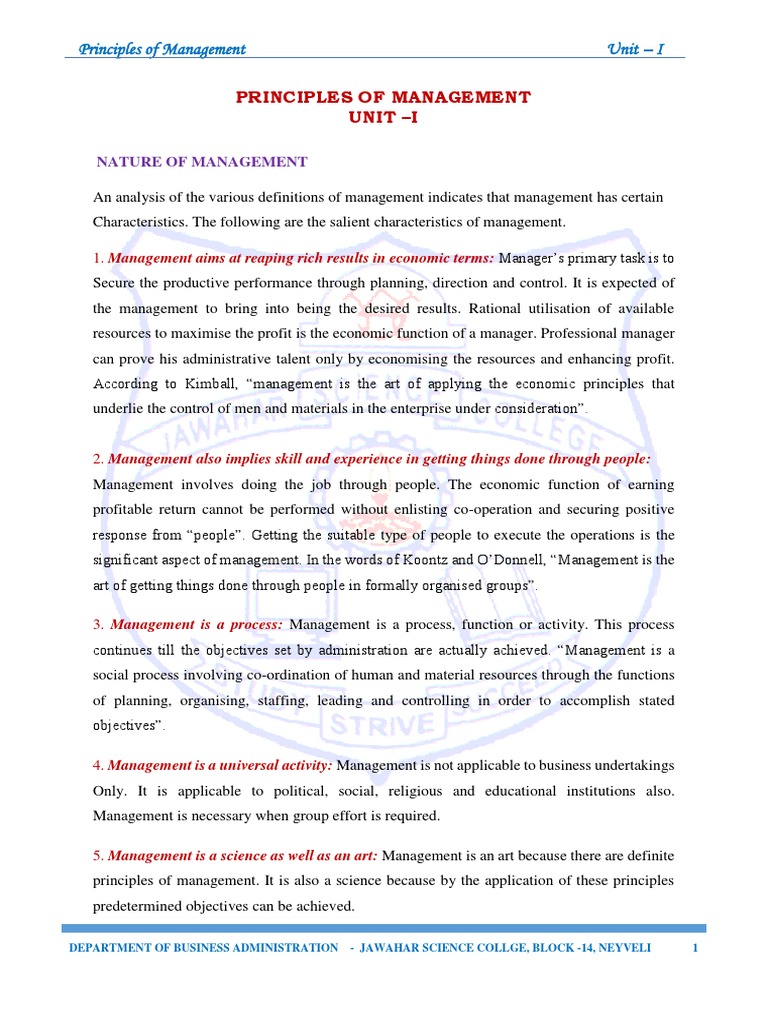 Principles of Management Unit – I