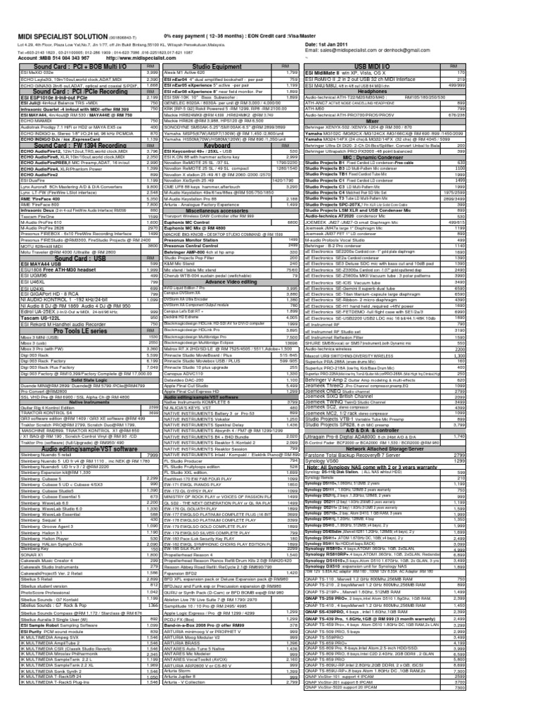 Steinberg Nuendo 5 UD fr v4 @ RM 1110 , inc NEK @ RM 1780 FL Studio Producer 794 Synology VS60 1299