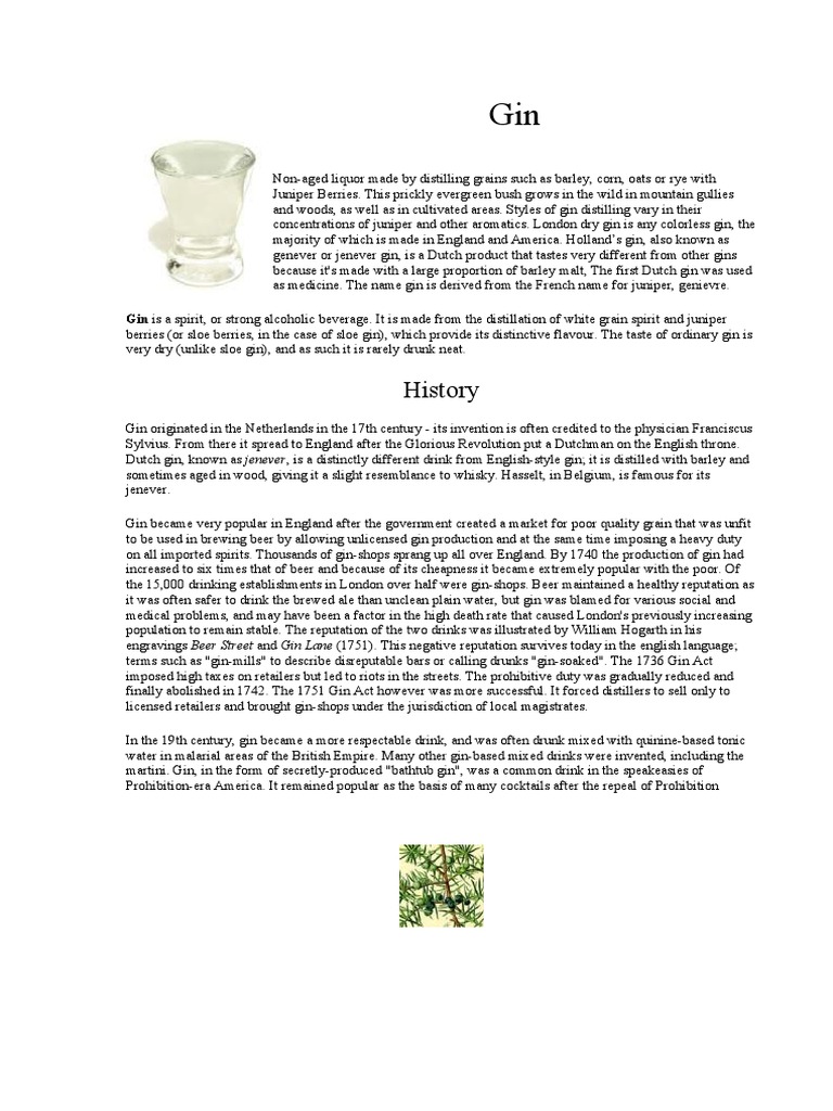 as medicine. The name gin is derived from the French name for juniper, genievre.