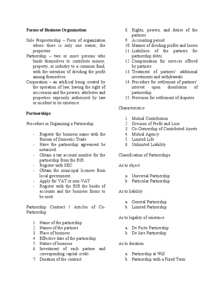 Corporation – an artificial being created by 14. Procedure for settlement of partners’