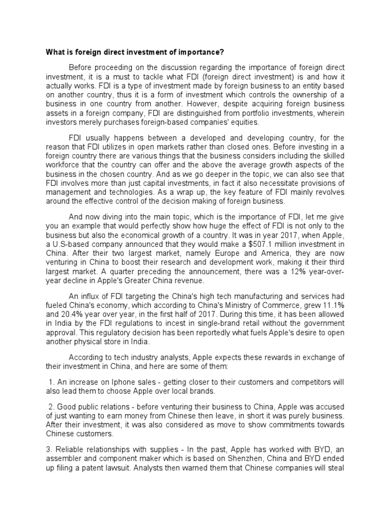 The investment of Apple in China had shown the importance of FDI for a
