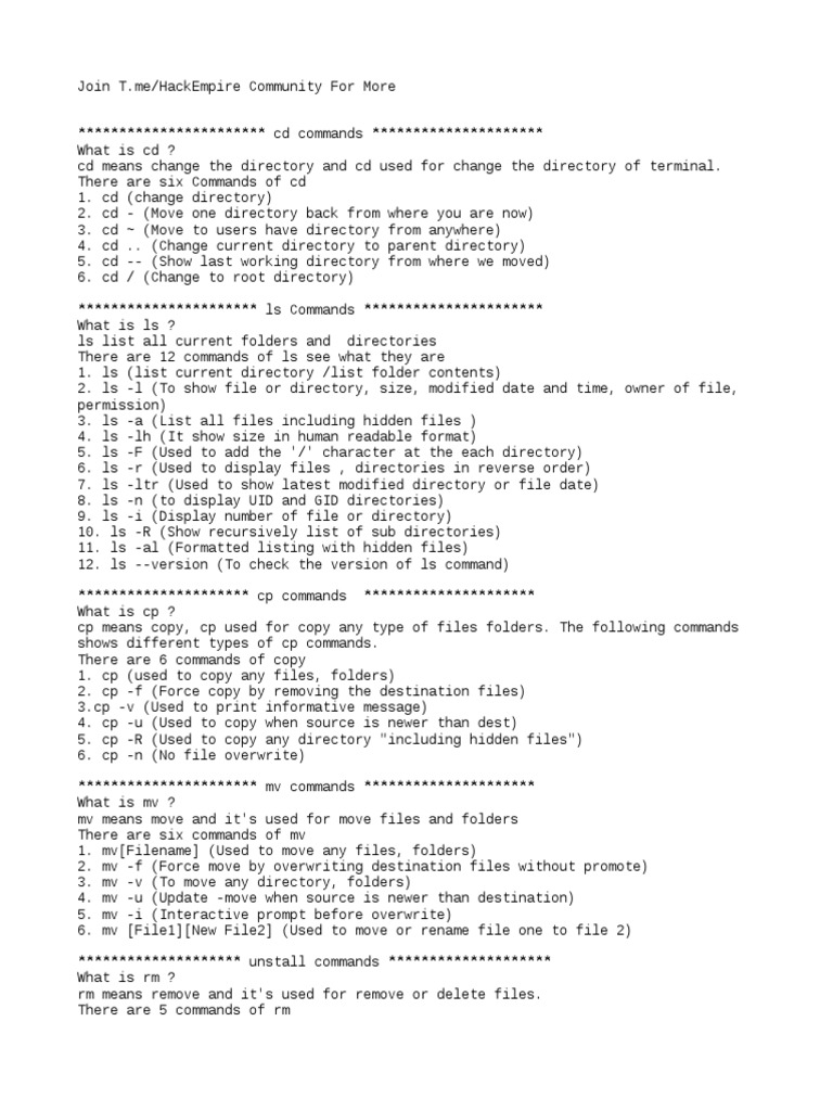6. mv [File1][New File2] (Used to move or rename file one to file 2)