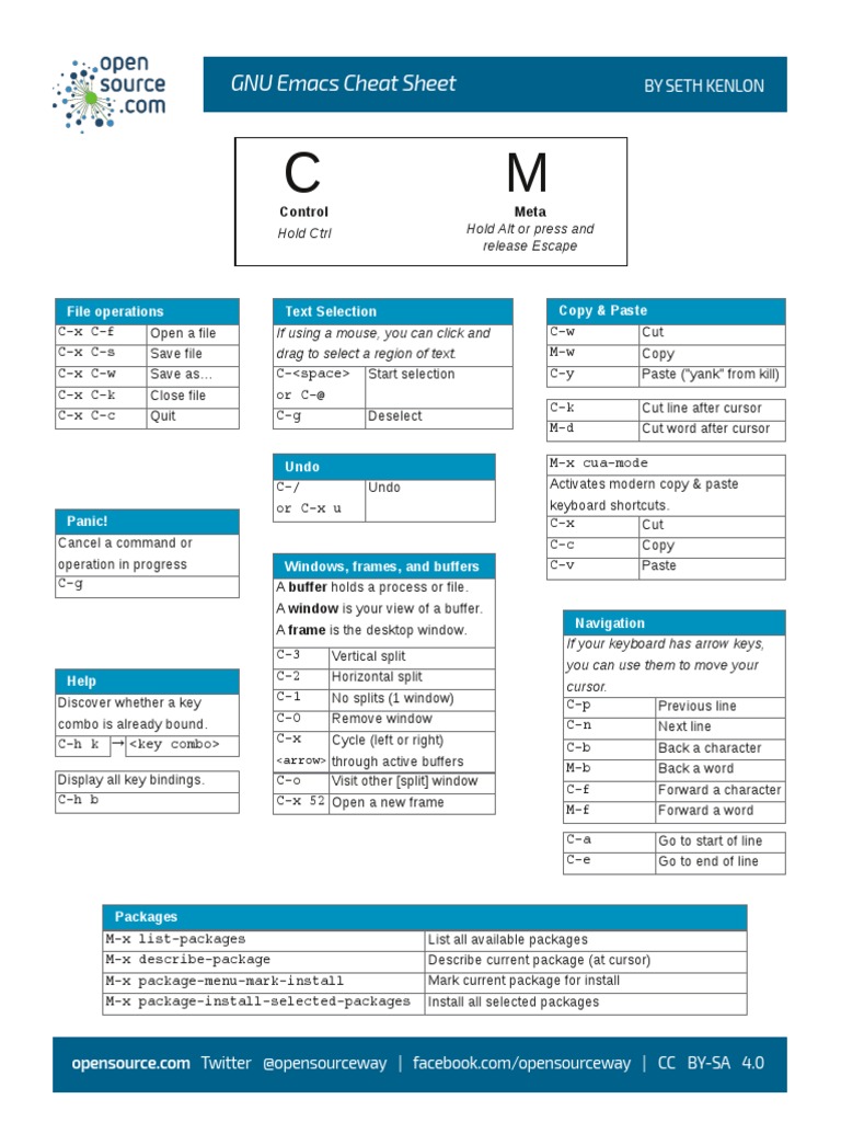 GNU Emacs Cheat Sheet BY SETH KENLON