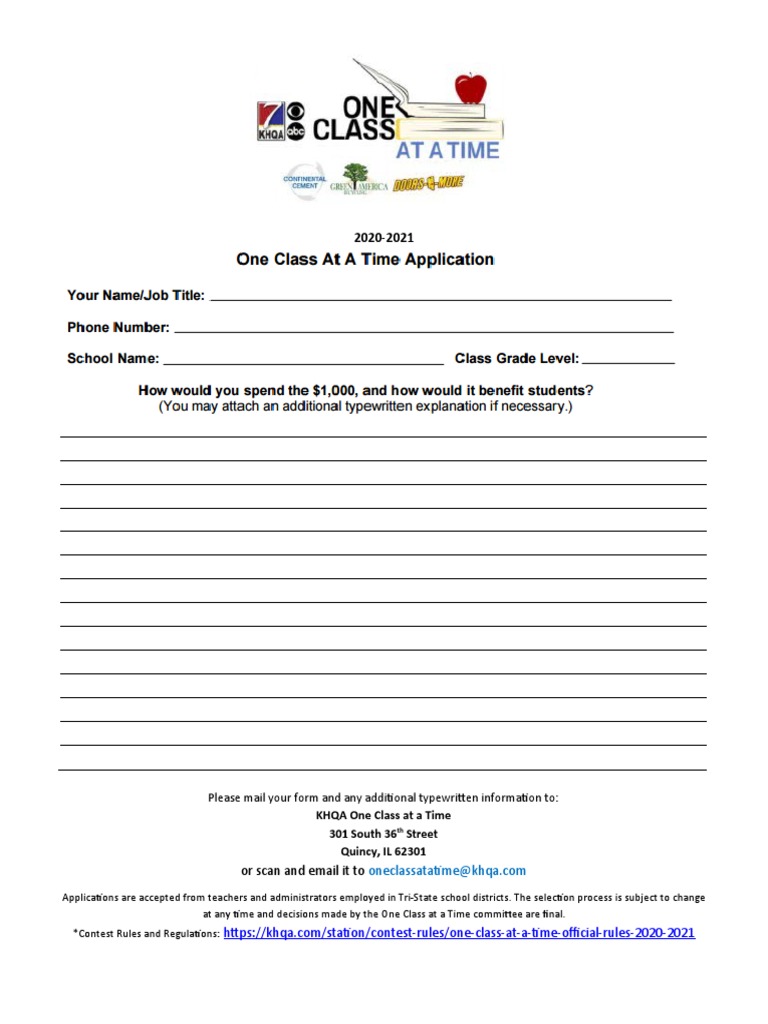 *Contest Rules and Regulations: https://khqa.com/station/contest-rules/one-class-at-a-time-official-rules-2020-2021