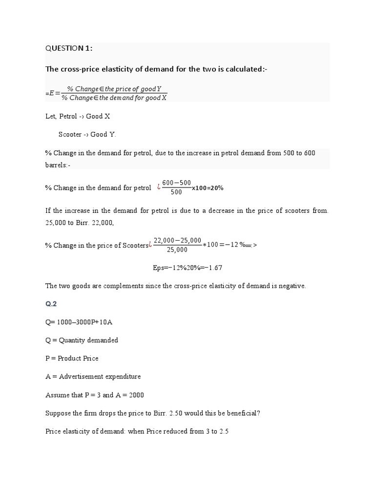Price elasticity of demand: when Price reduced from 3 to 2.5