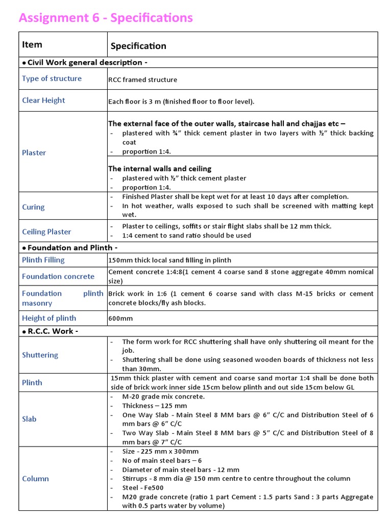 - One Way Slab - Main Steel 8 MM bars @ 6″ C/C and Distribution Steel of 6