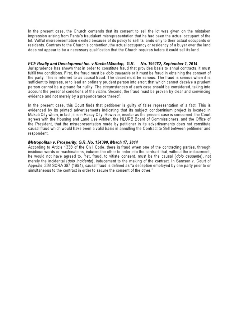 causal fraud which would have been a valid basis in annulling the Contract to Sell between petitioner and