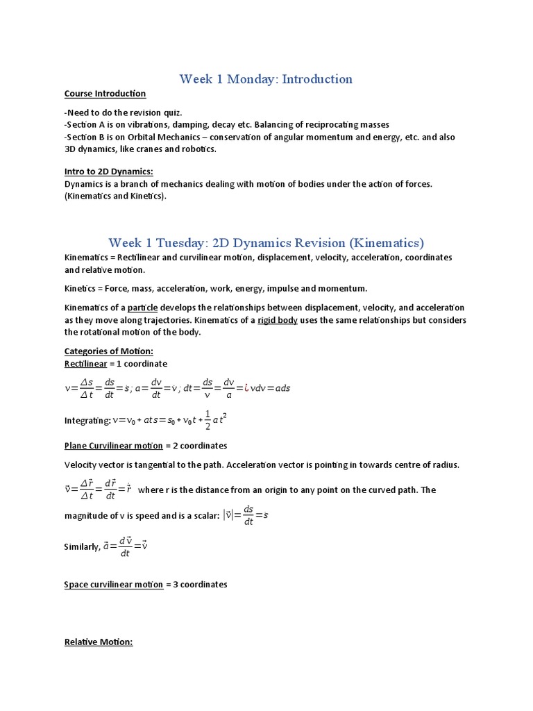 Week 10 Monday Lecture (1) – 3D Motion Equations