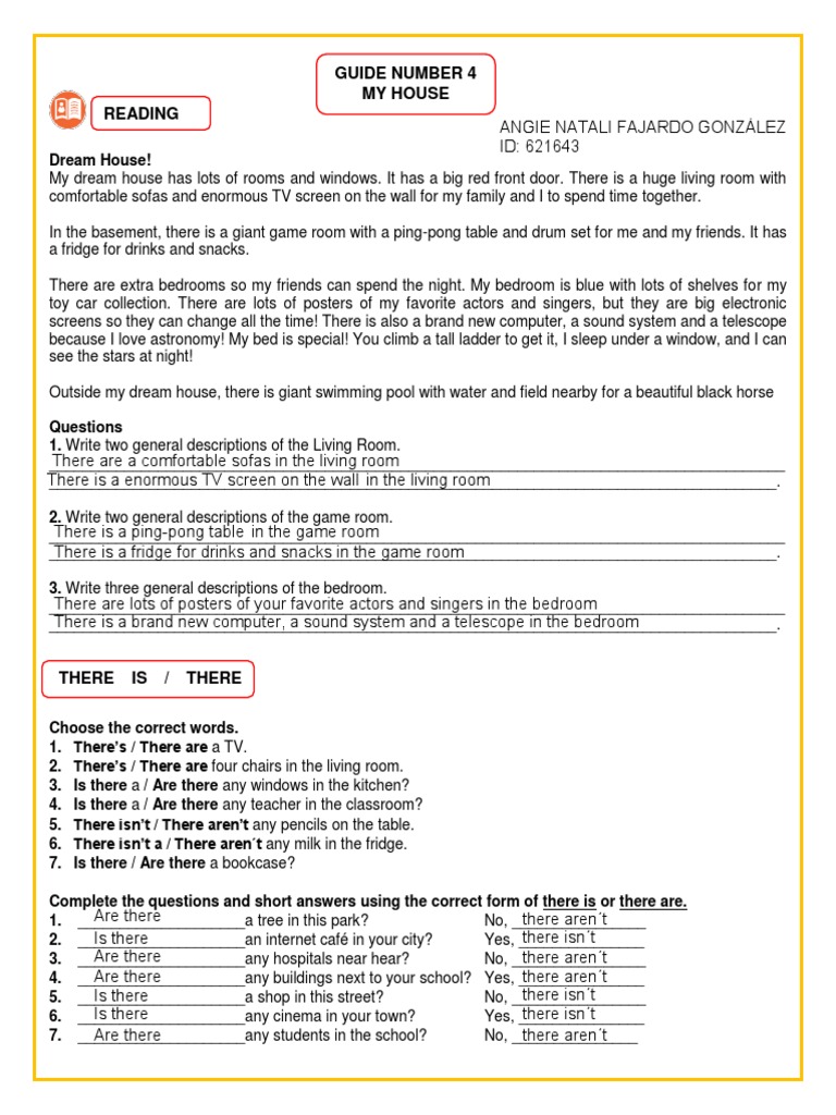 Complete the questions and short answers using the correct form of there is or there are.