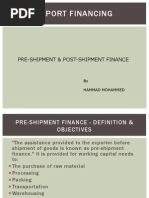 banks to the exporter prior to shipment of goods. The finance required to meet various expenses before