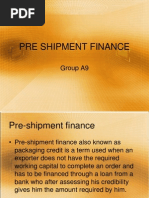 Pre Shipment Finance is issued by a financial institution when the seller want the payment of the
