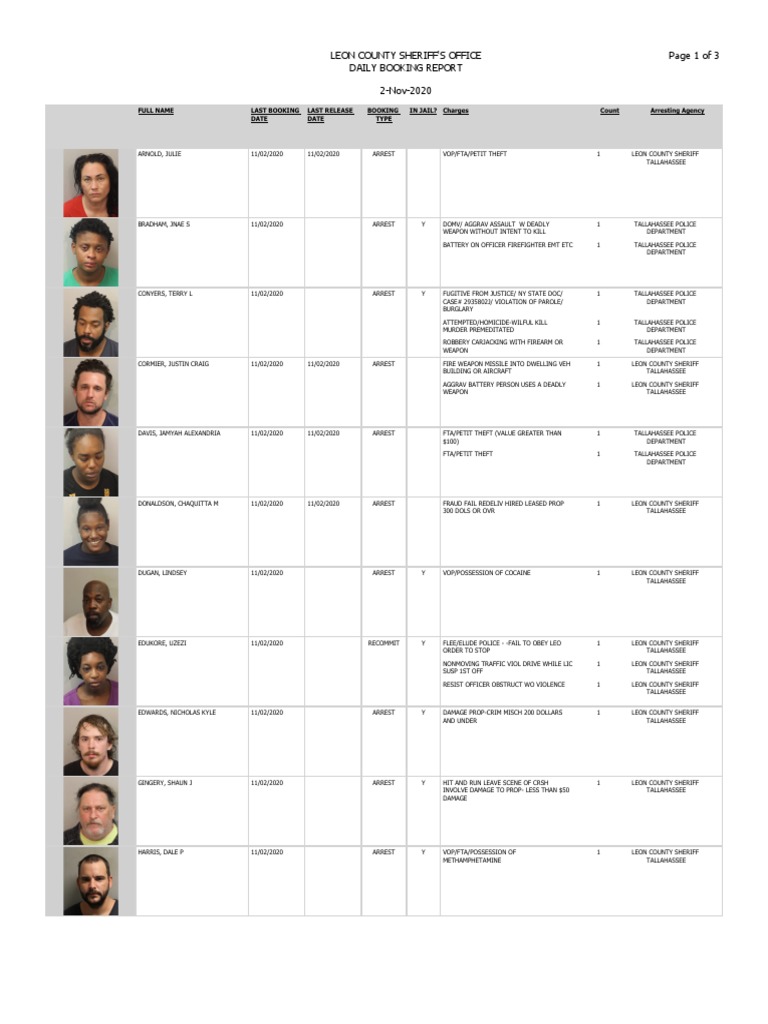 ARNOLD, JULIE 11/02/2020 11/02/2020 ARREST VOP/FTA/PETIT THEFT 1 LEON COUNTY SHERIFF