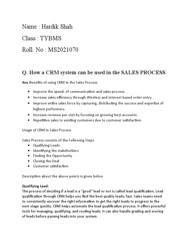 key to sales success. Converting potential leads into stakeholders and CRM helps us with