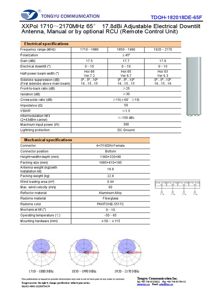 This publication is issued to provide information only and is not to form part of any order or contract. Tongyu Communication Inc.
